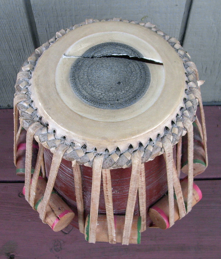 Bob's tabla has been falling apart for some time now. He's been patching it up as well as he's able, but he really should have brought his tabla to Dr. Tom long ago.